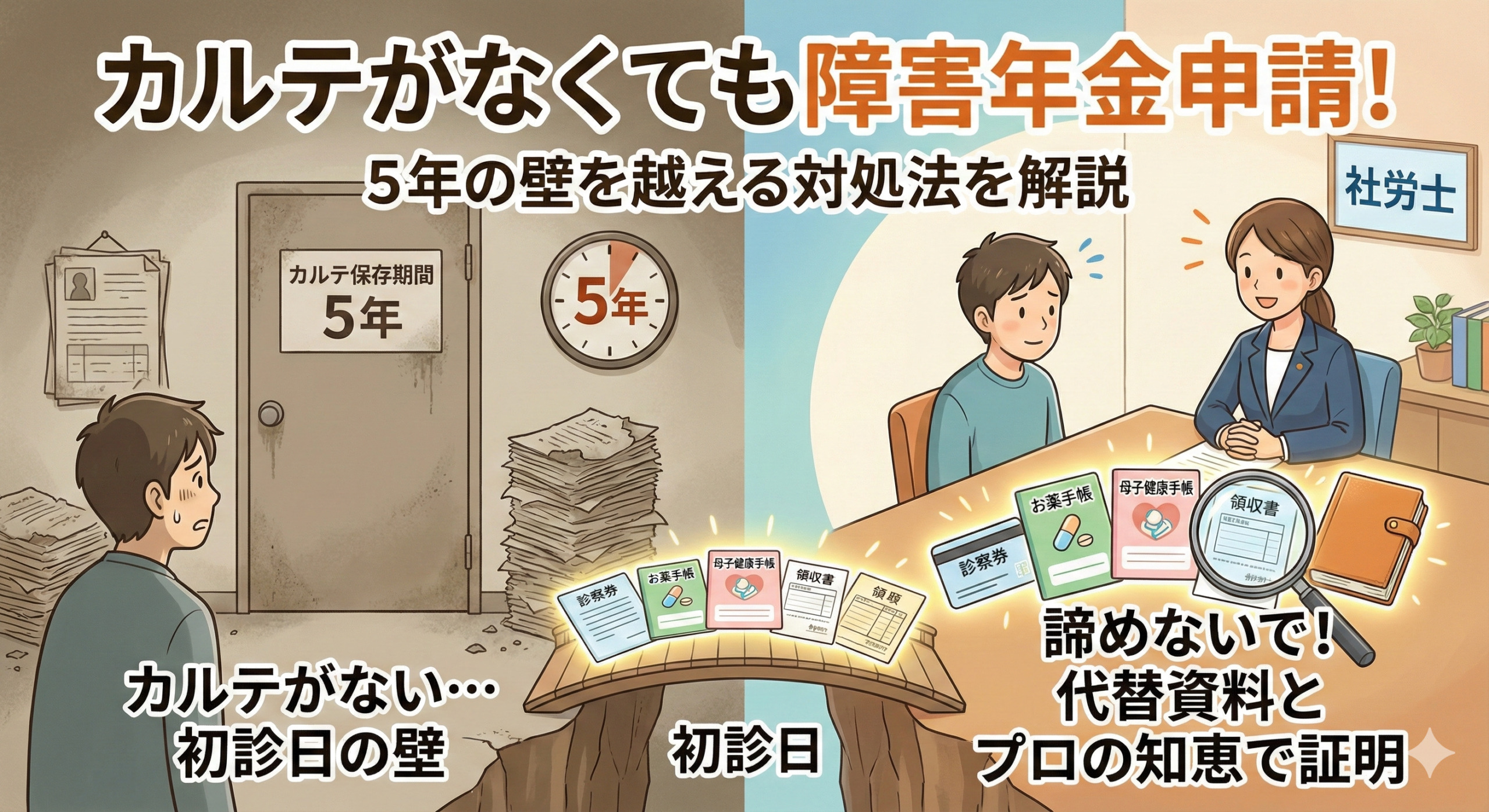 今回は、カルテが破棄されていたり、病院が廃院していたりする場合に、どのようにして「初診日」を証明すればよいのか、その具体的な対処法を解説します。